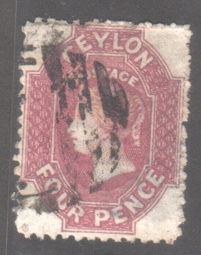 1867-70, SG 65b Wmk 6 perf 12.5 QV, 4d Rose Carmine used