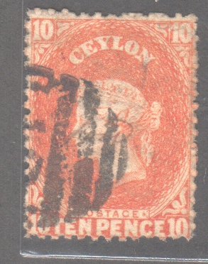 1867-70, SG 70b Wmk 6 perf 12.5 QV, 10d Red Orange used
